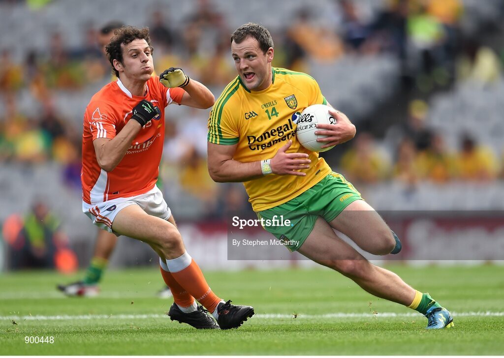 9 August 2014; Michael Murphy, Donegal, in action against Jamie Clarke, Armagh. GAA Football All-Ireland Senior Championship, Quarter-Final, Donegal v Armagh, Croke Park, Dublin. Picture credit: Stephen McCarthy / SPORTSFILE