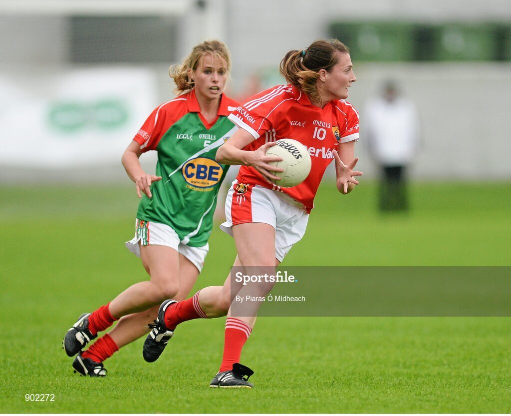 16 August 2014; Annie Walsh Cork, in action against Caoilfhionn Connelly, Mayo. TG4 All-Ireland Ladies Football Senior Championship, Quarter-Final, Cork v Mayo, O'Connor Park, Tullamore, Co. Offaly. Picture credit: Piaras O Midheach / SPORTSFILE