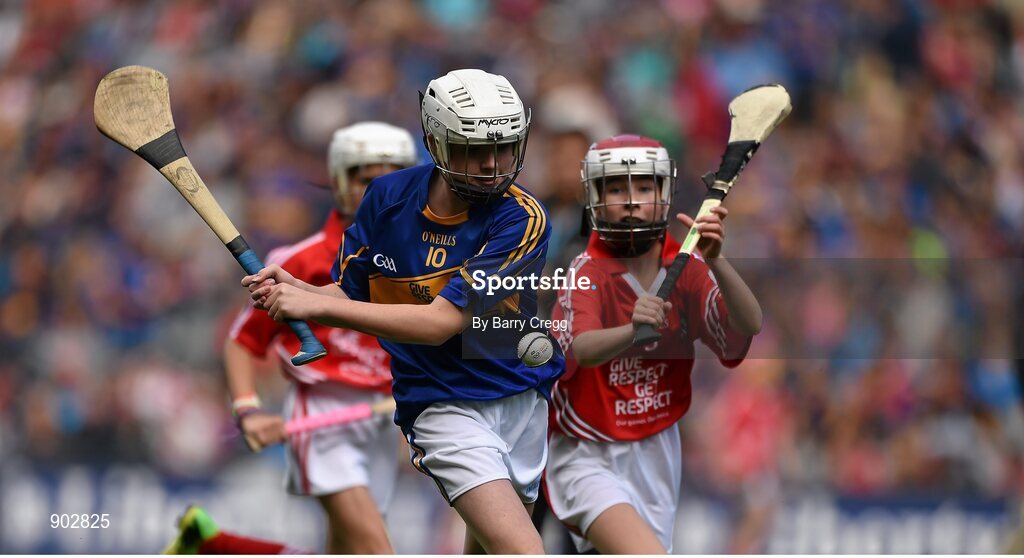 17 August 2014; Sarah Lacey, representing St. Mary's Primary School, Waterford, in action against Cianna Deegan, representing Marist National School, Dublin, Fermanagh. INTO/RESPECT Exhibition GoGames, Croke Park, Dublin. Picture credit: Barry Cregg / SPORTSFILE