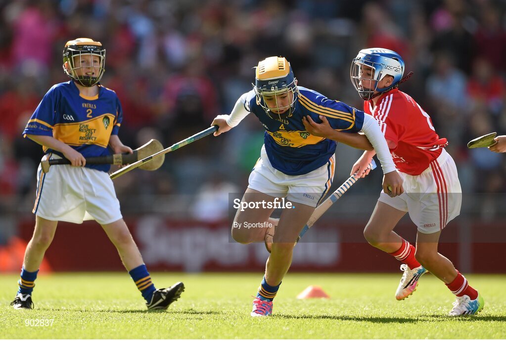 17 August 2014; Dylan McMahon, Broadford National School, Clare, representing Tipperary, in action against Ferran O’Sullivan-Clavo, St Corbans Boys National School, Kildare, representing Cork. INTO/RESPECT Exhibition GoGames, Croke Park, Dublin. Photo by Sportsfile