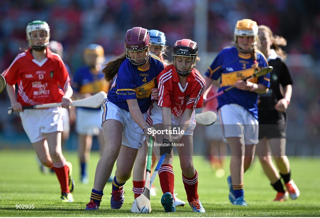17 August 2014; Katie Hunt, Ardrahan National School, Galway, representing Tipperary, in action against Ava Sweeney, Scoil Mhuire, Roscommon, representing Cork. INTO/RESPECT Exhibition GoGames, Croke Park, Dublin. Picture credit: Brendan Moran / SPORTSFILE