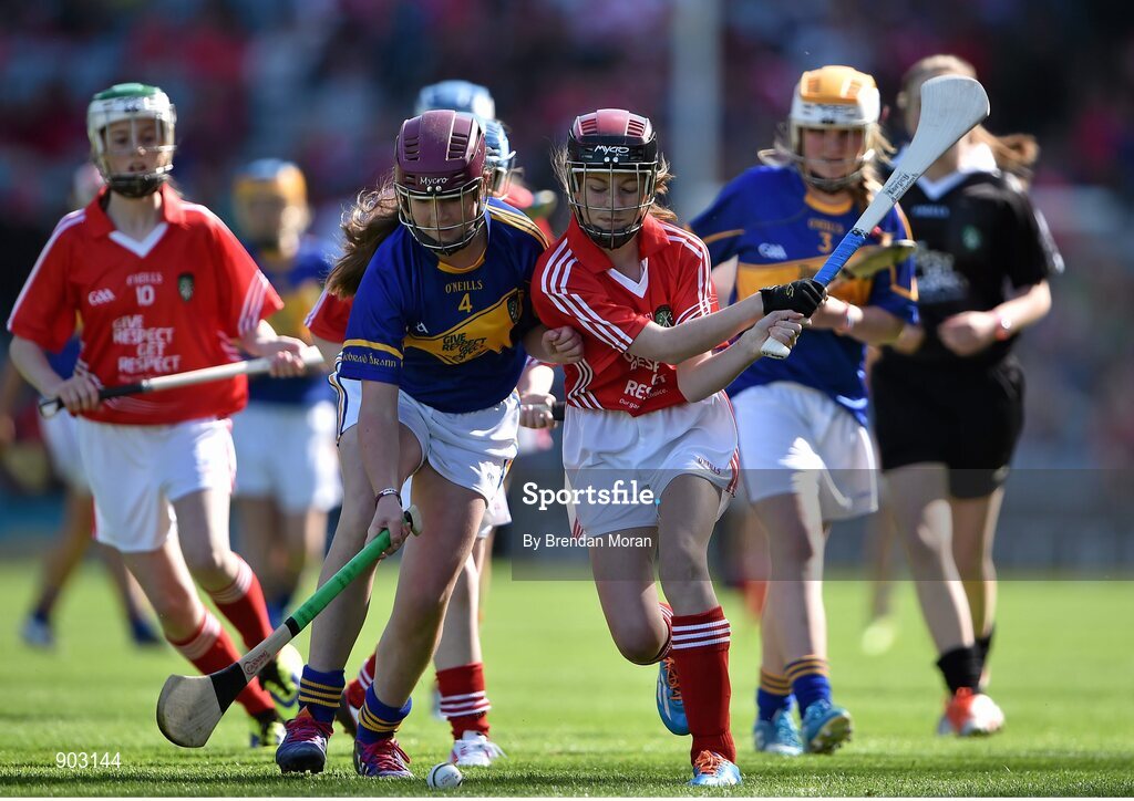 17 August 2014; Katie Hunt, Ardrahan National School, Galway, representing Tipperary, in action against Ava Sweeney, Scoil Mhuire, Roscommon, representing Cork. INTO/RESPECT Exhibition GoGames, Croke Park, Dublin. Picture credit: Brendan Moran / SPORTSFILE