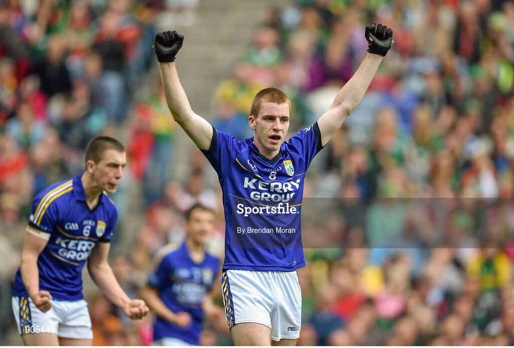 24 August 2014; Barry O'Sullivan, Kerry, celebrates at the final whistle. Electric Ireland GAA Football All Ireland Minor Championship, Semi-Final, Kerry v Mayo, Croke Park, Dublin. Picture credit: Brendan Moran / SPORTSFILE