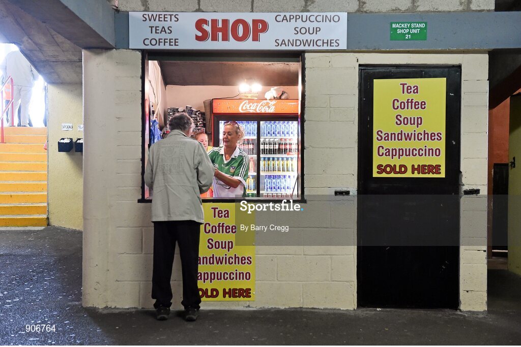 30 August 2014; Carol Casey serves a supporter in her shop ahead of the game. GAA Football All Ireland Senior Championship, Semi-Final Replay, Kerry v Mayo, Gaelic Grounds, Limerick. Picture credit: Barry Cregg / SPORTSFILE