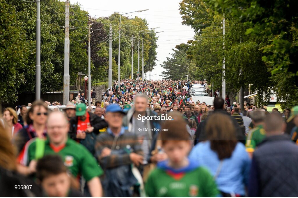 30 August 2014; Kerry and Mayo supporters make their way down the Ennis Road before the game. GAA Football All Ireland Senior Championship, Semi-Final Replay, Kerry v Mayo, Gaelic Grounds, Limerick. Picture credit: Dáire Brennan / SPORTSFILE