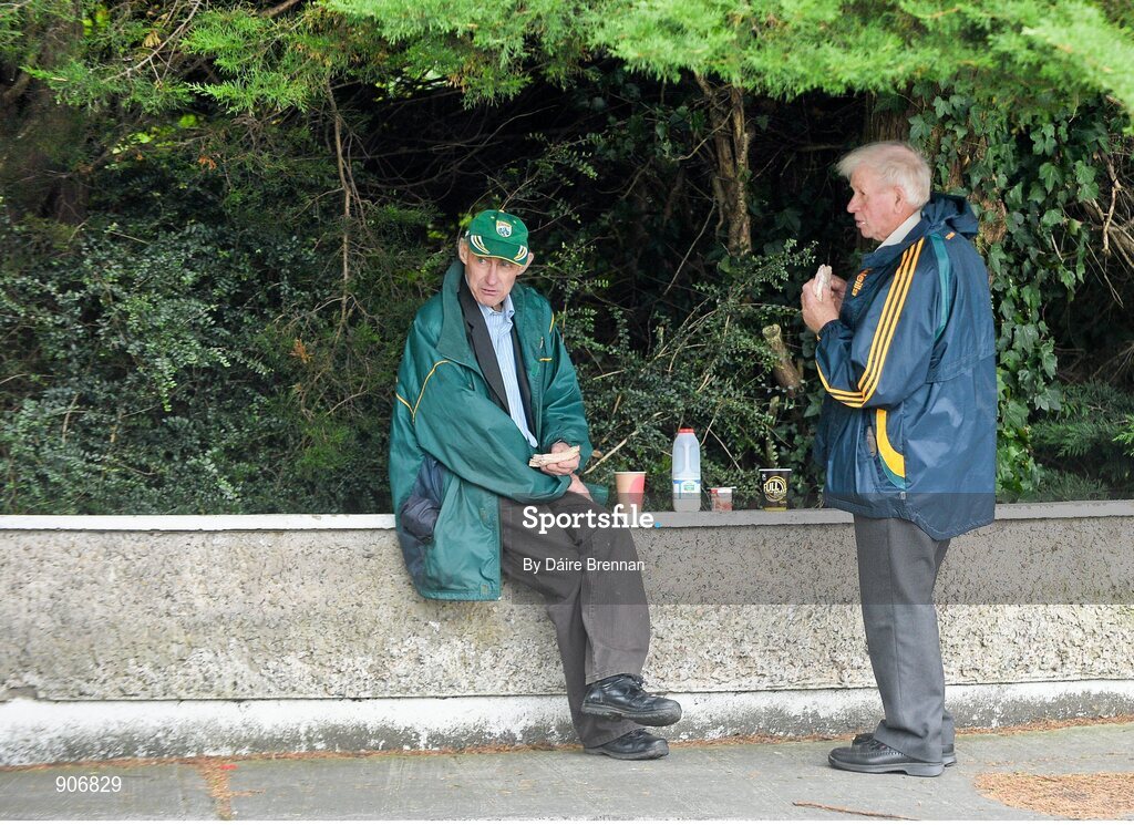 30 August 2014; Kerry supporters John Mangan, left, and Pat Quirke, from Tralee, Co. Kerry, enjoy their lunch before the game. GAA Football All Ireland Senior Championship, Semi-Final Replay, Kerry v Mayo, Gaelic Grounds, Limerick. Picture credit: Dáire Brennan / SPORTSFILE