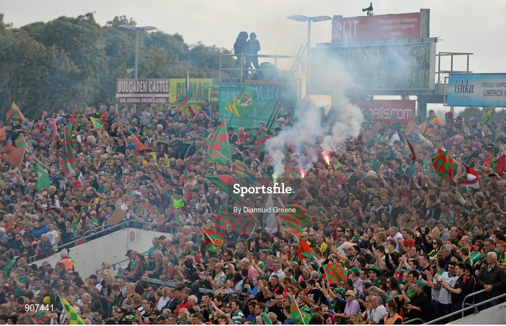 30 August 2014; Supporters in the Clare End terrace before the game. GAA Football All Ireland Senior Championship, Semi-Final Replay, Kerry v Mayo. Gaelic Grounds, Limerick. Picture credit: Diarmuid Greene / SPORTSFILE