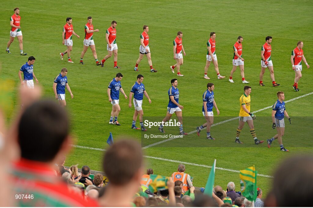 30 August 2014; The Kerry and Mayo teams parade behind the Artane School of Music Band before the game. GAA Football All Ireland Senior Championship, Semi-Final Replay, Kerry v Mayo. Gaelic Grounds, Limerick. Picture credit: Diarmuid Greene / SPORTSFILE