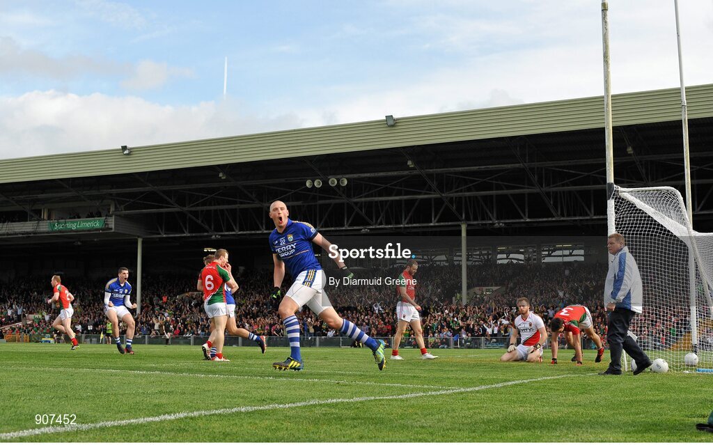 30 August 2014; Kieran Donaghy, Kerry, celebrates after scoring his side's first goal. GAA Football All Ireland Senior Championship, Semi-Final Replay, Kerry v Mayo. Gaelic Grounds, Limerick. Picture credit: Diarmuid Greene / SPORTSFILE