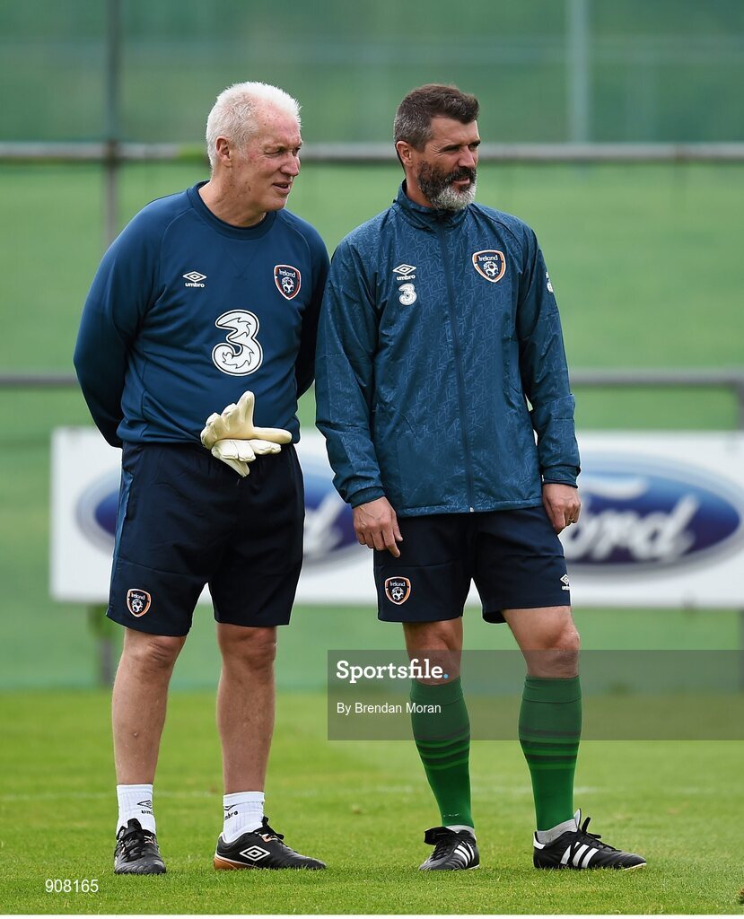 1 September 2014; Republic of Ireland assistant manager Roy Keane, right, with goalkeeping coach Seamus McDonagh during squad training ahead of their side's International friendly match against Oman on Wednesday. Republic of Ireland Squad Training, Gannon Park, Malahide, Co. Dublin. Picture credit: Brendan Moran / SPORTSFILE