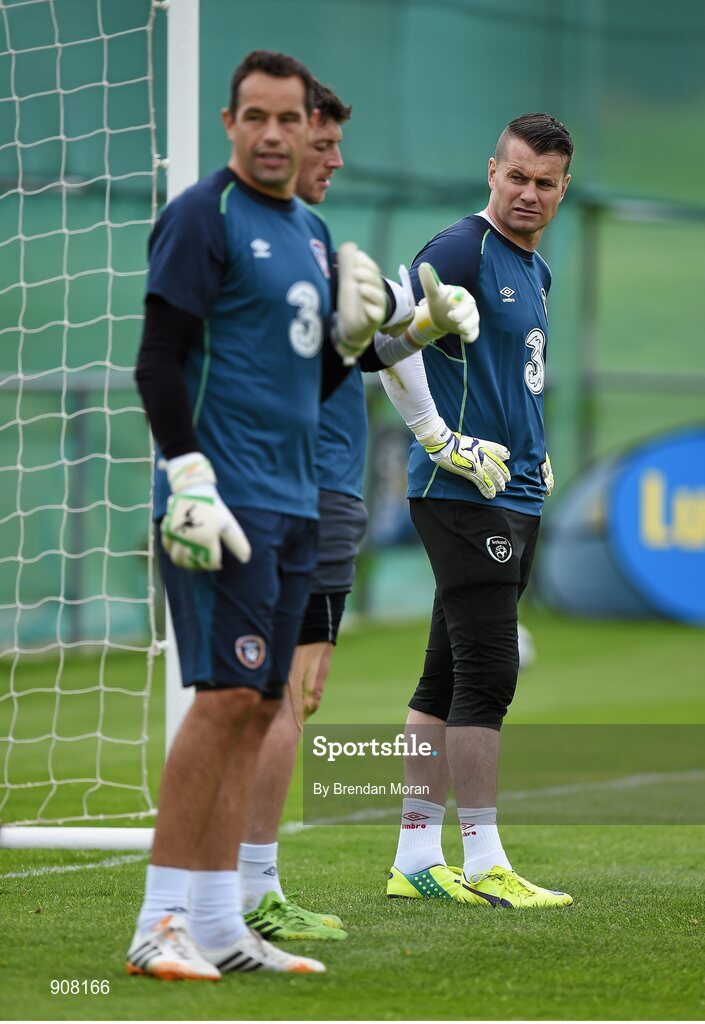 1 September 2014; Republic of Ireland goalkeepers, from right, Shay Given, Kieren Westwood and David Forde during squad training ahead of their side's International friendly match against Oman on Wednesday. Republic of Ireland Squad Training, Gannon Park, Malahide, Co. Dublin. Picture credit: Brendan Moran / SPORTSFILE