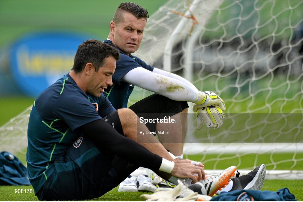 1 September 2014; Republic of Ireland goalkeepers David Forde, left, and Shay Given during squad training ahead of their side's International friendly match against Oman on Wednesday. Republic of Ireland Squad Training, Gannon Park, Malahide, Co. Dublin. Picture credit: David Maher / SPORTSFILE