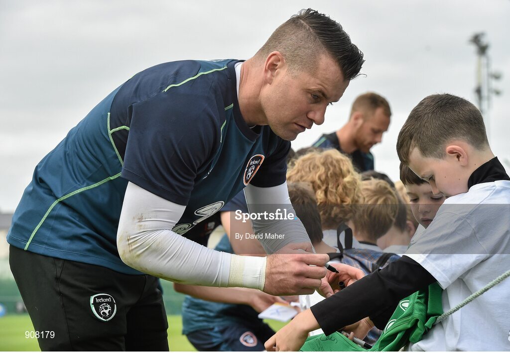 1 September 2014; Republic of Ireland goalkeeper Shay Given signs autographs after squad training ahead of their side's International friendly match against Oman on Wednesday. Republic of Ireland Squad Training, Gannon Park, Malahide, Co. Dublin. Picture credit: David Maher / SPORTSFILE