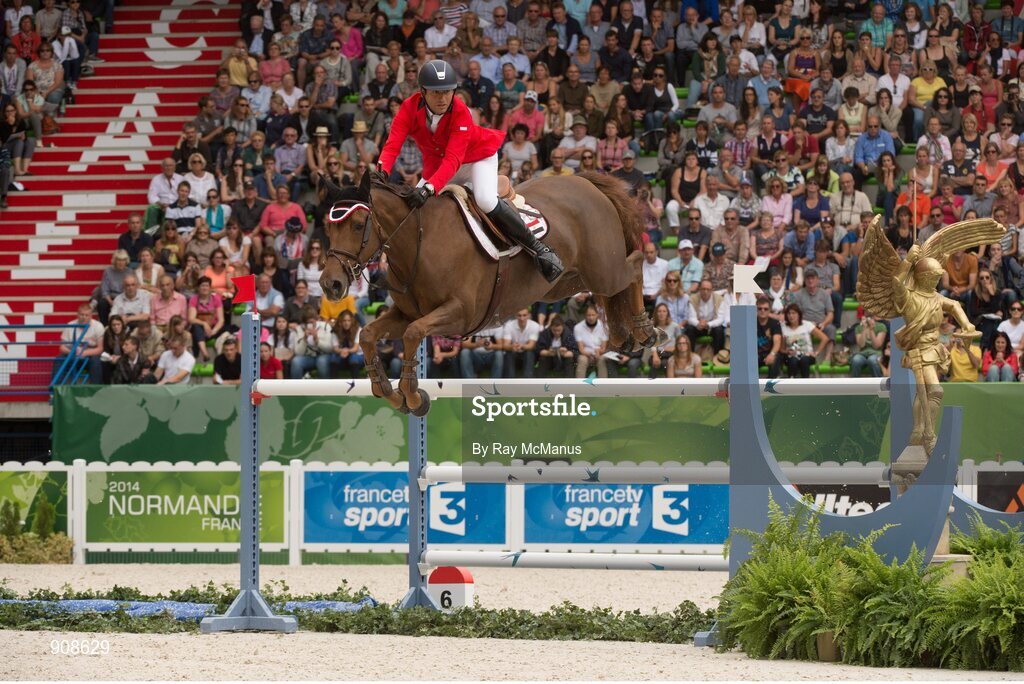 2 September 2014; Sameh El Dahan on Suma's Zorro competing during speed competition - first Round of the Showjumping. 2014 Alltech FEI World Equestrian Games, Caen, France. Picture credit: Ray McManus / SPORTSFILE