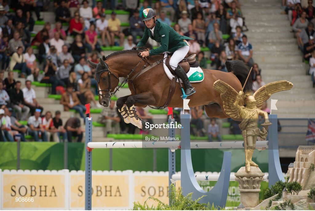 2 September 2014; Denis Lynch on All Star 5 competing during speed competition- first Round of the Showjumping. 2014 Alltech FEI World Equestrian Games, Caen, France. Picture credit: Ray McManus / SPORTSFILE