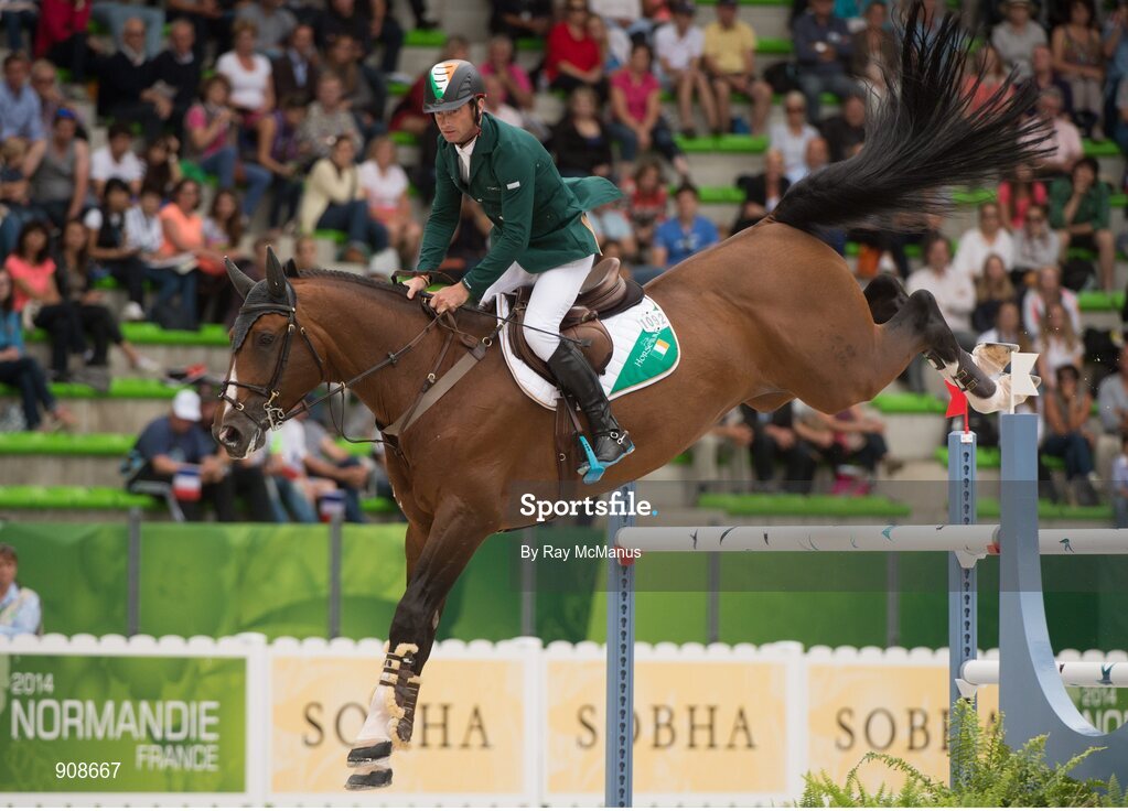 2 September 2014; Denis Lynch on All Star 5 competing during speed competition- first Round of the Showjumping. 2014 Alltech FEI World Equestrian Games, Caen, France. Picture credit: Ray McManus / SPORTSFILE