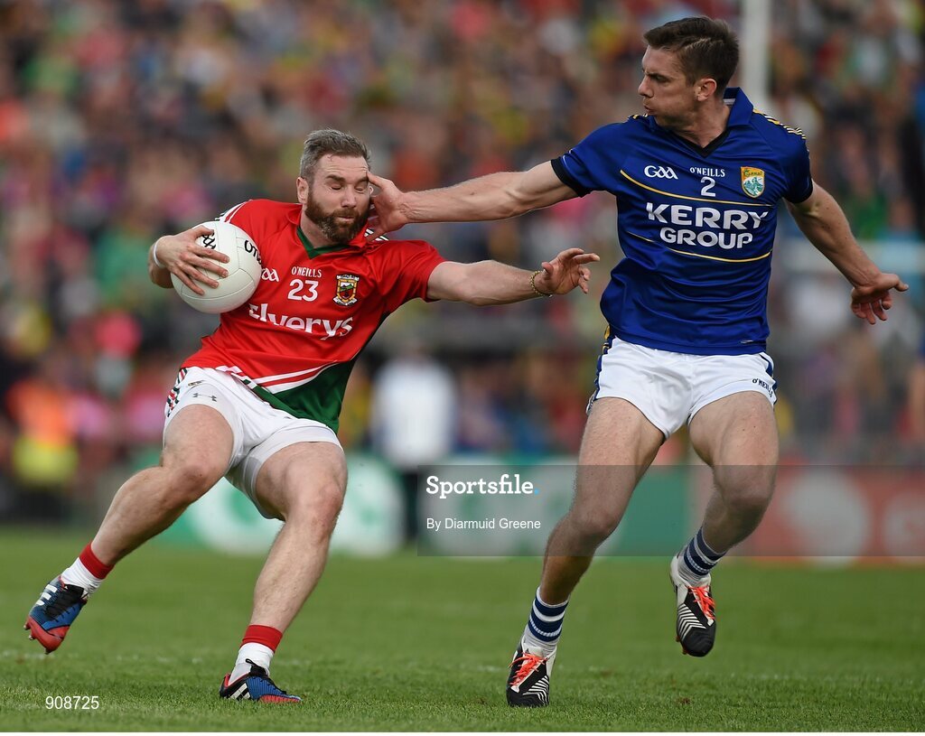 30 August 2014; Michael Conroy, Mayo, in action against Marc O Se, Kerry. GAA Football All Ireland Senior Championship, Semi-Final Replay, Kerry v Mayo. Gaelic Grounds, Limerick. Picture credit: Diarmuid Greene / SPORTSFILE