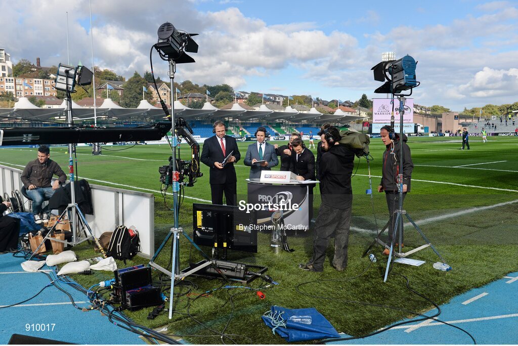 6 September 2014; Sky Sports presenters and analysts prepare ahead of the game. Guinness PRO12, Round 1, Glasgow Warriors v Leinster. Scotstoun Stadium, Glasgow, Scotland. Picture credit: Stephen McCarthy / SPORTSFILE
