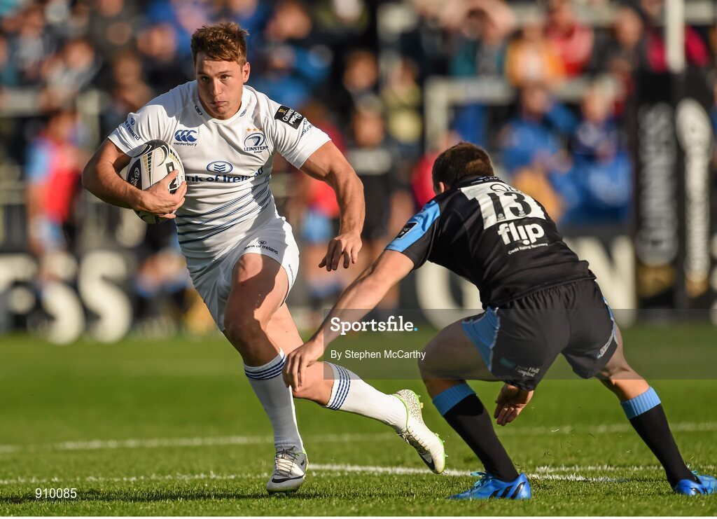 6 September 2014; Brendan Macken, Leinster, in action against Mark Bennett, Glasgow Warriors. Guinness PRO12, Round 1, Glasgow Warriors v Leinster. Scotstoun Stadium, Glasgow, Scotland. Picture credit: Stephen McCarthy / SPORTSFILE