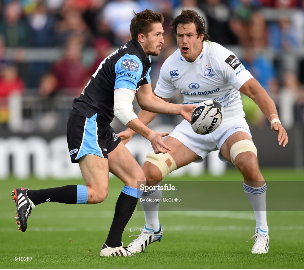 6 September 2014; Henry Pyrgos, Glasgow Warriors, in action against Mike McCarthy, Leinster. Guinness PRO12, Round 1, Glasgow Warriors v Leinster. Scotstoun Stadium, Glasgow, Scotland. Picture credit: Stephen McCarthy / SPORTSFILE