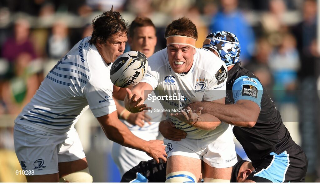6 September 2014; Dominic Ryan, Leinster, is tackled by Josh Strauss, Glasgow Warriors. Guinness PRO12, Round 1, Glasgow Warriors v Leinster. Scotstoun Stadium, Glasgow, Scotland. Picture credit: Stephen McCarthy / SPORTSFILE