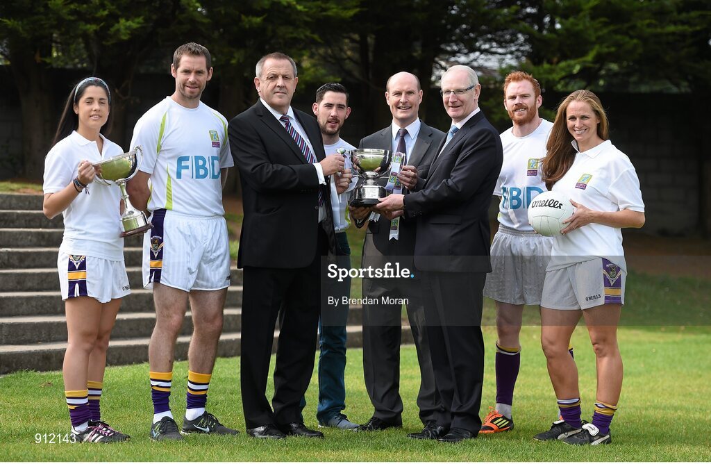 11 September 2014; A host of Kilmacud Crokes stars, past and present, were on hand in Kilmacud Crokes as the 2014 FBD 7's was launched. This is the 42nd year of Ireland's premier 7's tournament which has become a firm favourite in the GAA calendar for both players and supporters alike. In attendance at the 2014 FBD7s launch, from left, Molly Lamb, Darren Magee, Sean Fox, Chairman, Football Section, Kilmacud Crokes, Mark McHugh, Mick Durcan, Michael Garvey, Director of Marketing & Sales, FBD, Mark Vaughan and Ann Marie McBarron. Kilmacud Crokes GAA Club, Burke Park, Glenalbyn, Stillorgan, Co. Dublin. Picture credit: Brendan Moran / SPORTSFILE