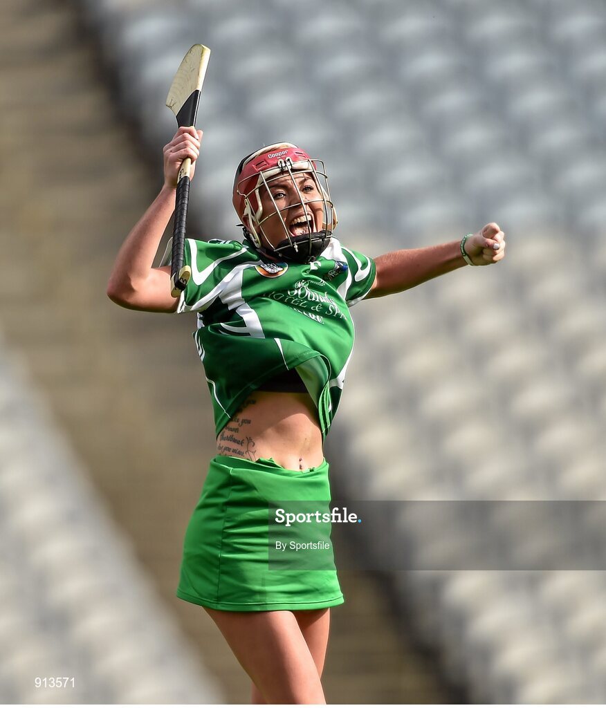 14 September 2014; Sarah Carey, Limerick, celebrates at the final whistle. All Ireland Intermediate Camogie Championship Final, Kilkenny v Limerick, Croke Park, Dublin. Photo by Sportsfile