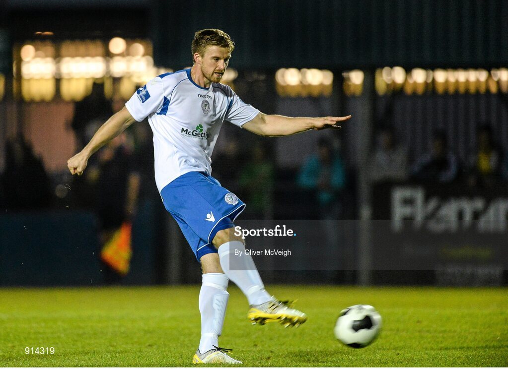 17 September 2014; Keith Cowan, Finn Harps, has a shot on goal. FAI Ford Cup Quarter-Final Replay, Finn Harps v Avondale United. Finn Park, Ballybofey, Co. Donegal. Picture credit: Oliver McVeigh / SPORTSFILE
