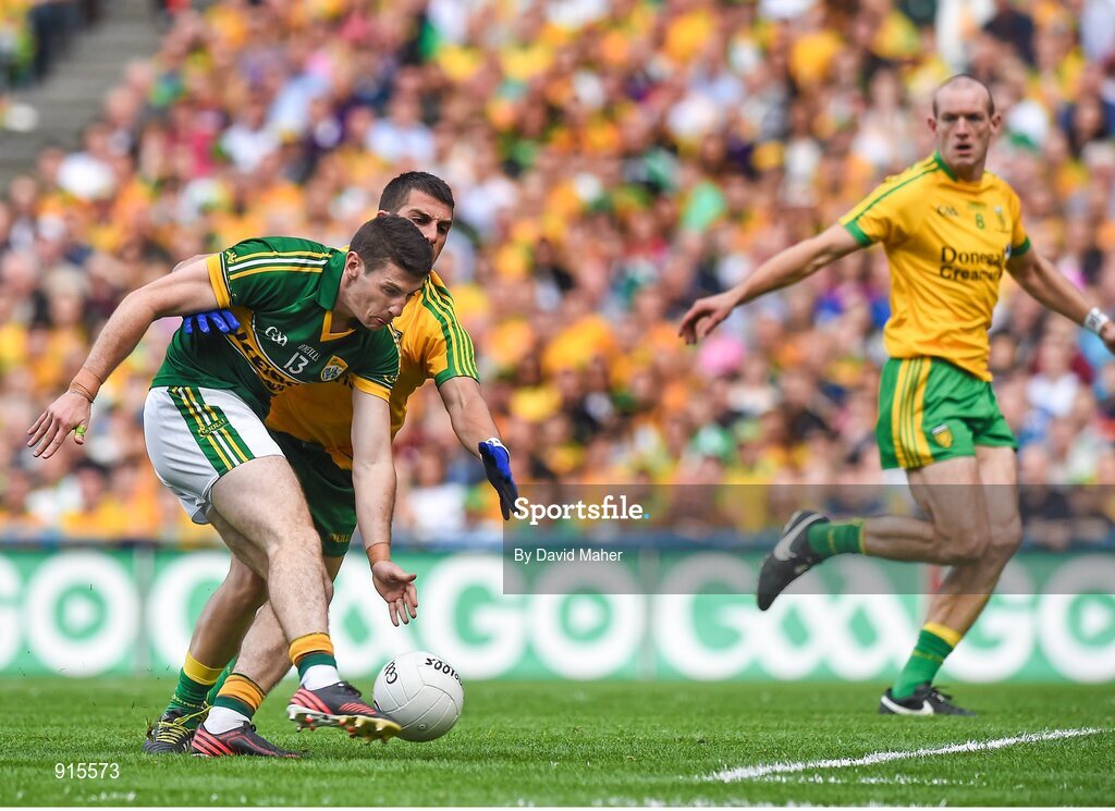 21 September 2014; Kerry's Paul Geaney shoots to score his side's first goal. GAA Football All Ireland Senior Championship Final, Kerry v Donegal. Croke Park, Dublin. Picture credit: David Maher / SPORTSFILE