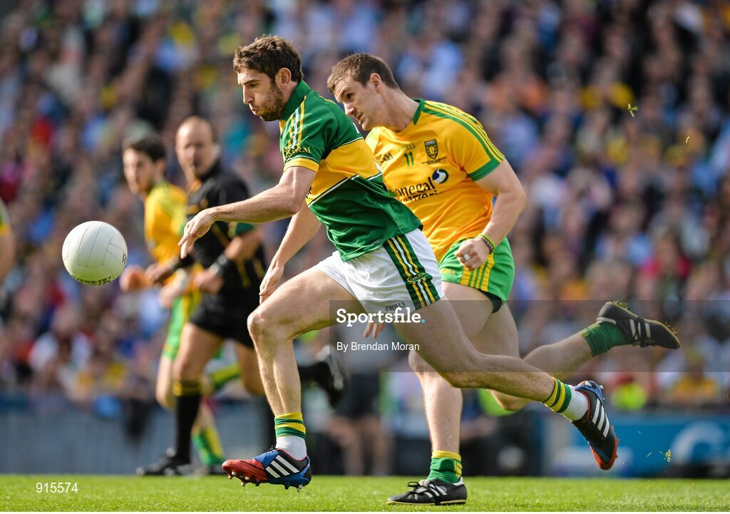 21 September 2014; Killian Young, Kerry, in action against Leo McLoone, Donegal. GAA Football All Ireland Senior Championship Final, Kerry v Donegal. Croke Park, Dublin. Picture credit: Brendan Moran / SPORTSFILE