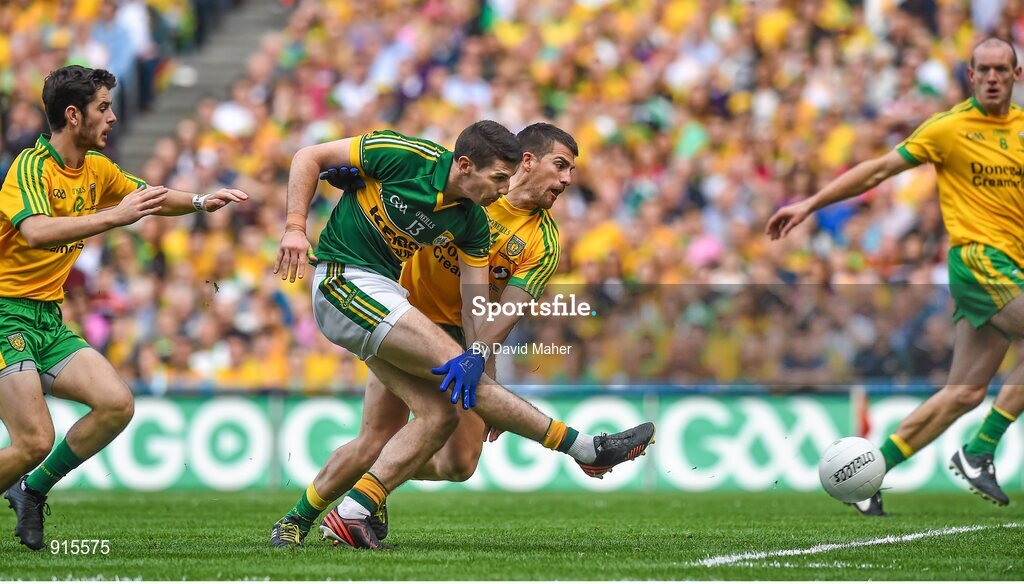 21 September 2014; Kerry's Paul Geaney shoots to score his side's first goal. GAA Football All Ireland Senior Championship Final, Kerry v Donegal. Croke Park, Dublin. Picture credit: David Maher / SPORTSFILE
