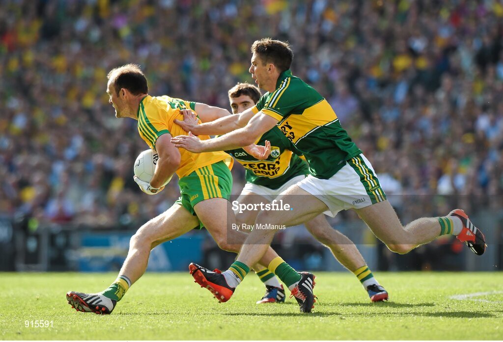 21 September 2014; Colm McFadden, Donegal, in action against Marc Ó Sé, Kerry. GAA Football All Ireland Senior Championship Final, Kerry v Donegal. Croke Park, Dublin. Picture credit: Ray McManus / SPORTSFILE