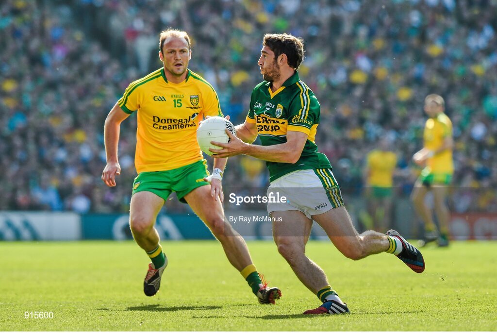 21 September 2014; Killian Young, Kerry, in action against Colm McFadden, Donegal. GAA Football All Ireland Senior Championship Final, Kerry v Donegal. Croke Park, Dublin. Picture credit: Ray McManus / SPORTSFILE