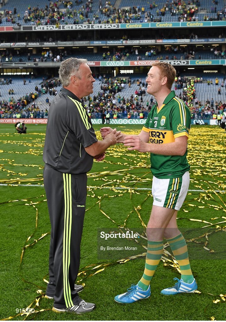 21 September 2014; Kerry selector Mikey Sheehy, left, congratulates Colm Cooper after the game. GAA Football All Ireland Senior Championship Final, Kerry v Donegal. Croke Park, Dublin. Picture credit: Brendan Moran / SPORTSFILE