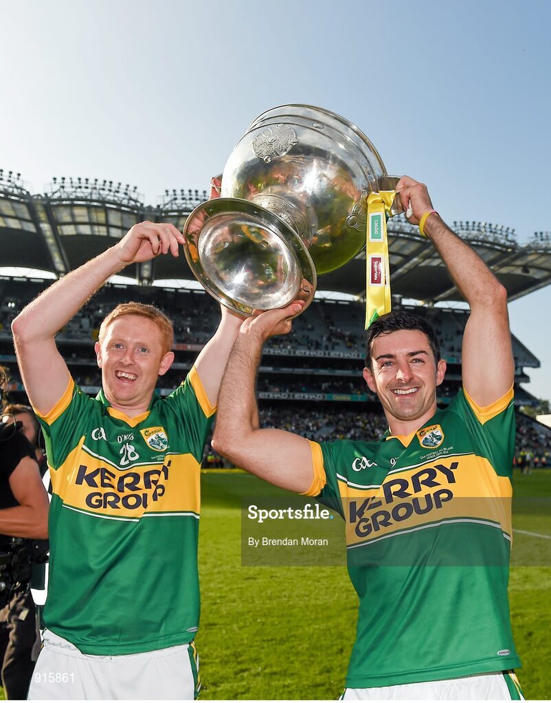 21 September 2014; Colm Cooper, left, and Aidan O'Mahony, Kerry, celebrate with the Sam Maguire cup after the game. GAA Football All Ireland Senior Championship Final, Kerry v Donegal. Croke Park, Dublin. Picture credit: Brendan Moran / SPORTSFILE