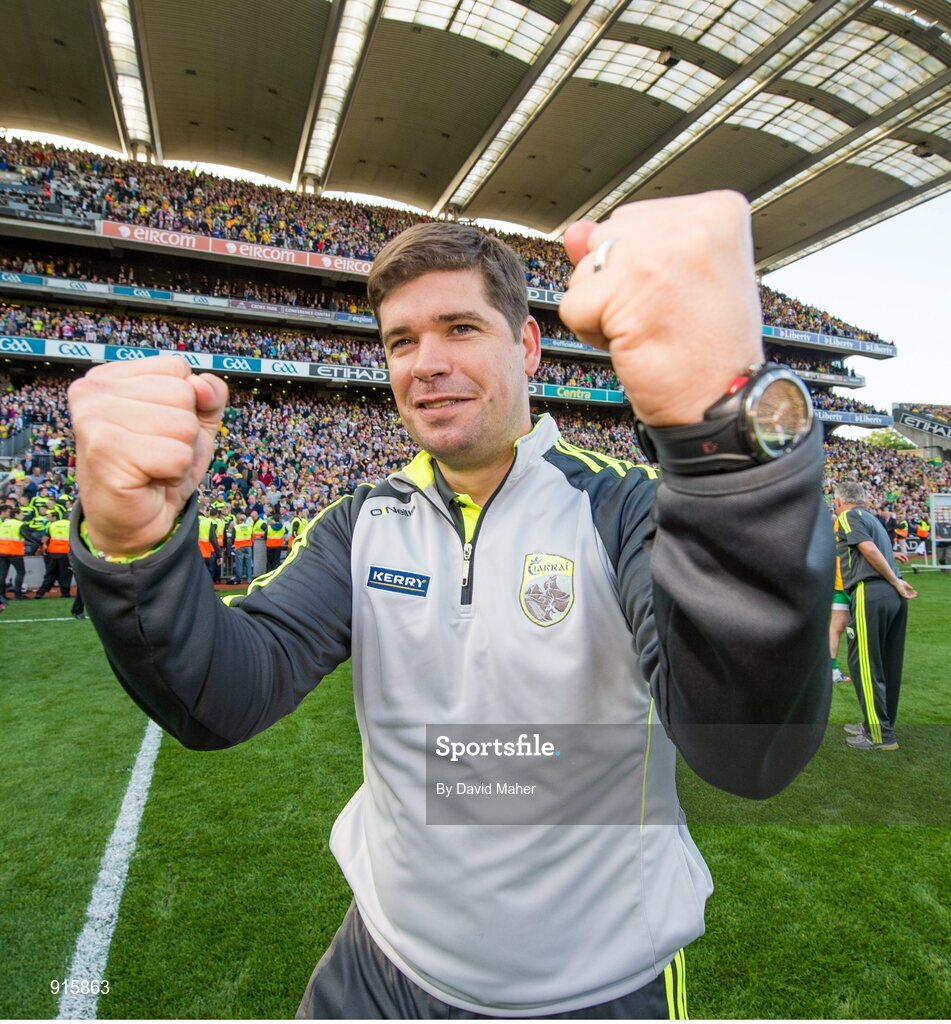 21 September 2014; Kerry manager Eamonn Fitzmaurice, celebrates at the end of the game. GAA Football All Ireland Senior Championship Final, Kerry v Donegal. Croke Park, Dublin. Picture credit: David Maher / SPORTSFILE