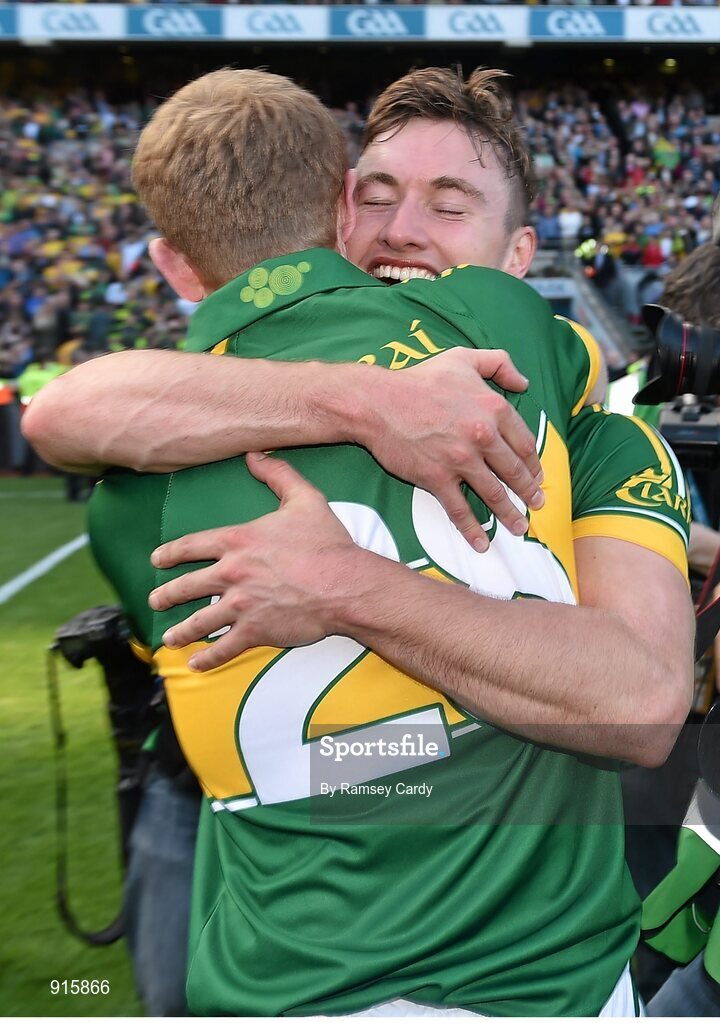 21 September 2014; Kerry's James O'Donoghue, left, and Colm Cooper celebrate at the final whistle. GAA Football All Ireland Senior Championship Final, Kerry v Donegal. Croke Park, Dublin. Picture credit: Ramsey Cardy / SPORTSFILE