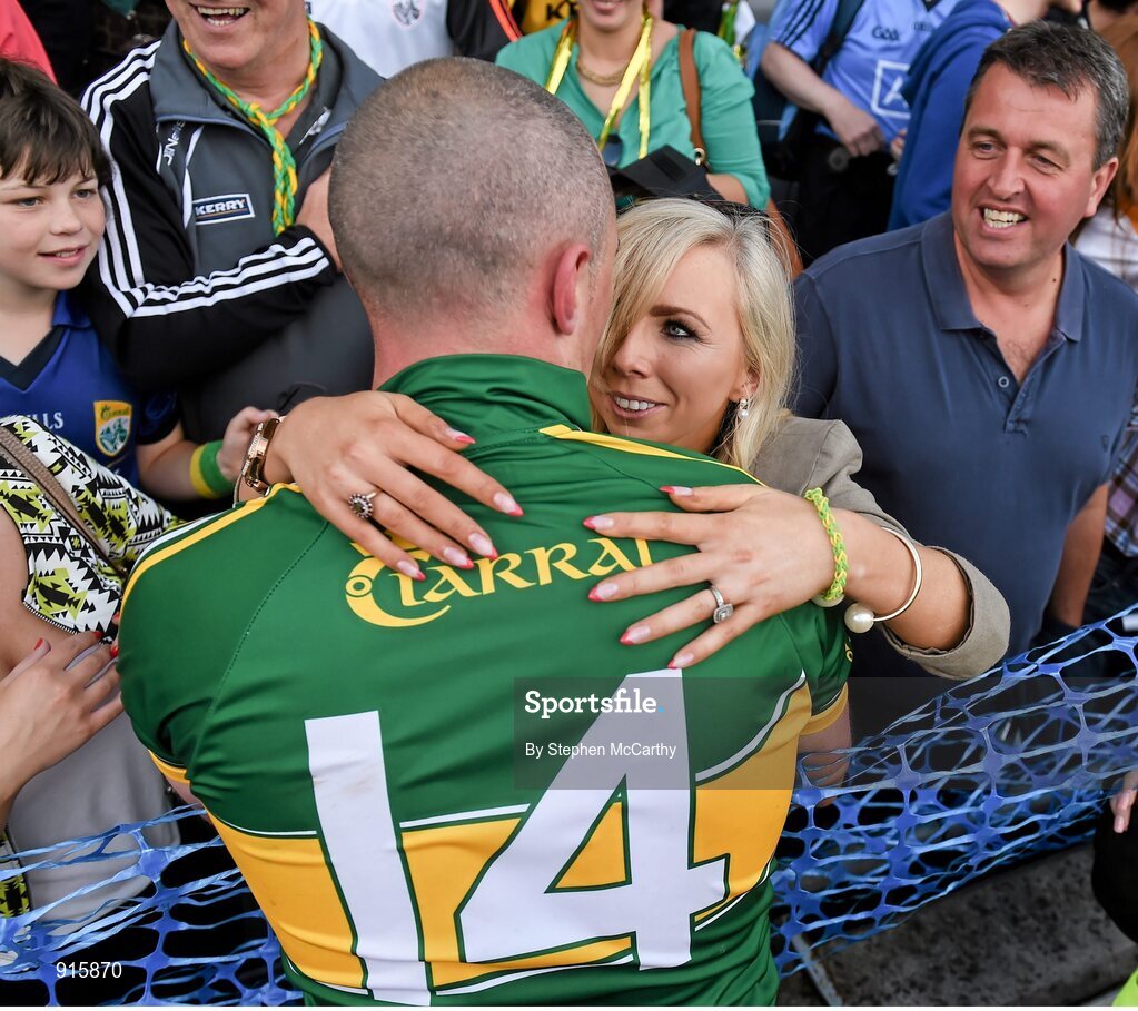 21 September 2014; Kerry's Kieran Donaghy celebrates with his wife Hillary following their victory. GAA Football All Ireland Senior Championship Final, Kerry v Donegal. Croke Park, Dublin. Picture credit: Stephen McCarthy / SPORTSFILE