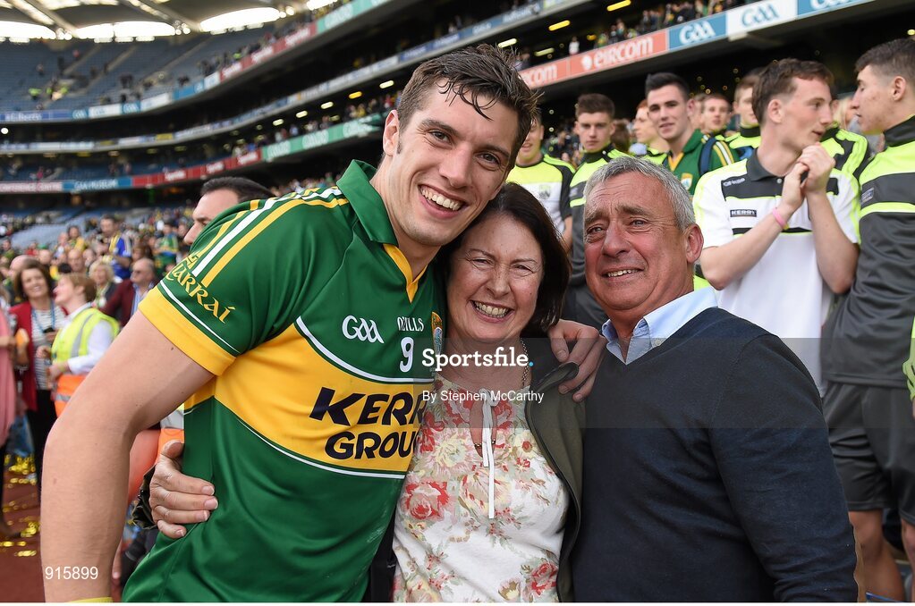 21 September 2014; Kerry's David Moran celebrates with his parents Anne and Ogie following their victory. GAA Football All Ireland Senior Championship Final, Kerry v Donegal. Croke Park, Dublin. Picture credit: Stephen McCarthy / SPORTSFILE