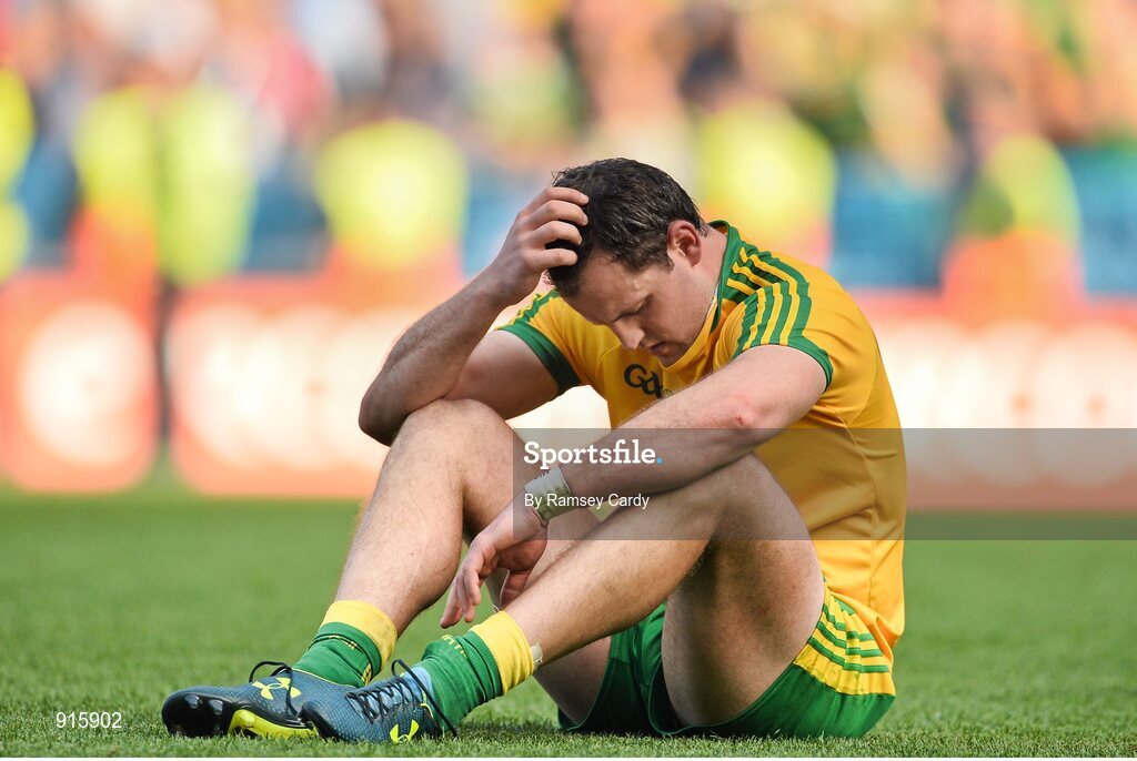 21 September 2014; Donegal's Michael Murphy dejected at the final whistle. GAA Football All Ireland Senior Championship Final, Kerry v Donegal. Croke Park, Dublin. Picture credit: Ramsey Cardy / SPORTSFILE