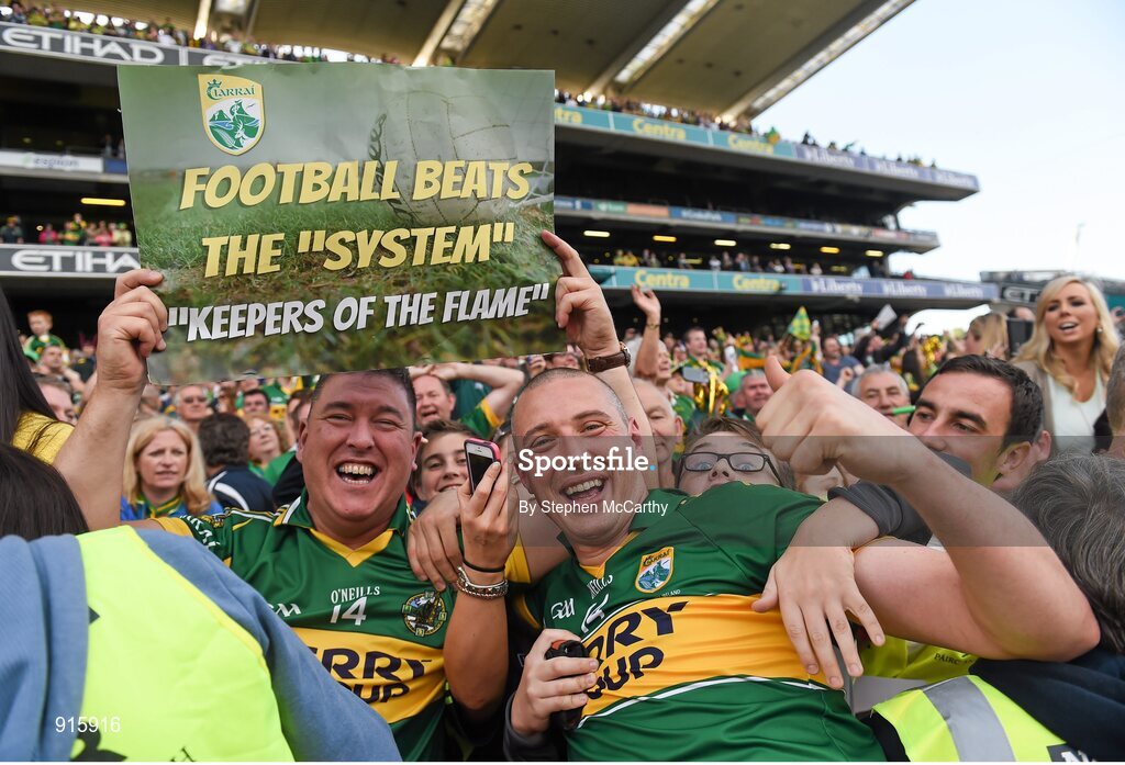 21 September 2014; Kerry's Kieran Donaghy celebrates with this Brian Fitzgerald following their victory. GAA Football All Ireland Senior Championship Final, Kerry v Donegal. Croke Park, Dublin. Picture credit: Stephen McCarthy / SPORTSFILE