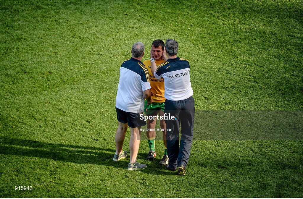 21 September 2014; Donegal manager Jim McGuinness, right, and team doctor Kevin Moran console Frank McGlynn after the game. GAA Football All Ireland Senior Championship Final, Kerry v Donegal. Croke Park, Dublin. Picture credit: Dáire Brennan / SPORTSFILE
