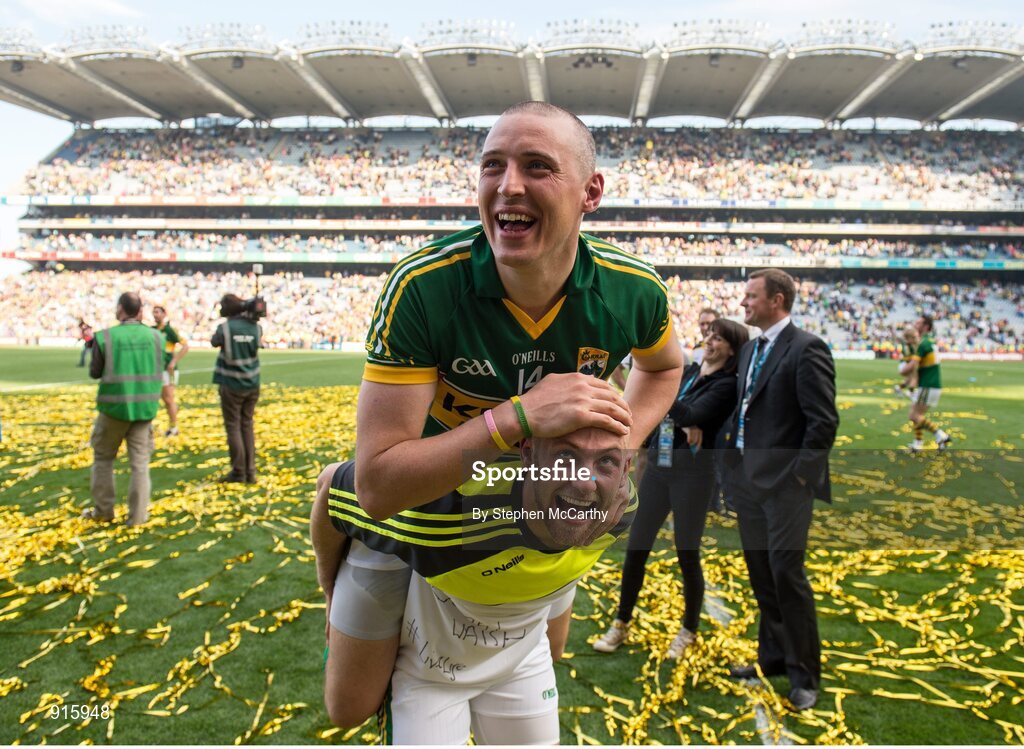 21 September 2014; Kerry's Kieran Donaghy is lifted by Barry John Keane following their victory. GAA Football All Ireland Senior Championship Final, Kerry v Donegal. Croke Park, Dublin. Picture credit: Stephen McCarthy / SPORTSFILE