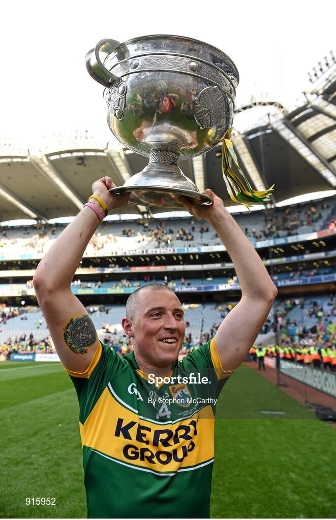 21 September 2014; Kerry's Kieran Donaghy celebrates with the Sam Maguire cup. GAA Football All Ireland Senior Championship Final, Kerry v Donegal. Croke Park, Dublin. Picture credit: Stephen McCarthy / SPORTSFILE