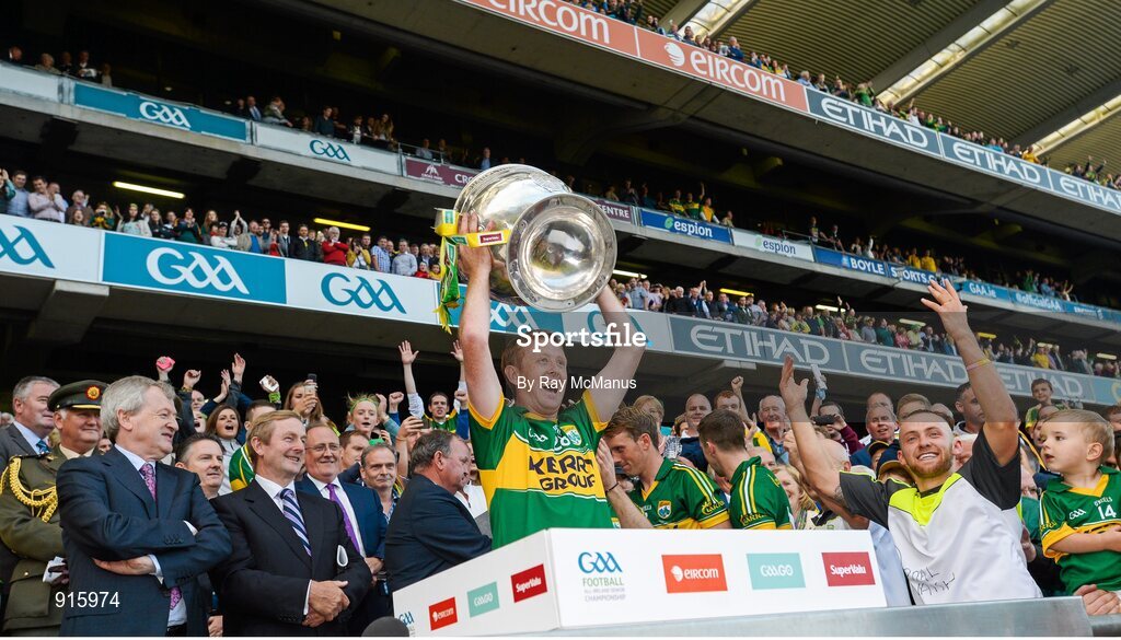 21 September 2014; Colm Cooper, an additional panel member for Kerry, lifts the Sam Maguire. GAA Football All Ireland Senior Championship Final, Kerry v Donegal. Croke Park, Dublin. Picture credit: Ray McManus / SPORTSFILE