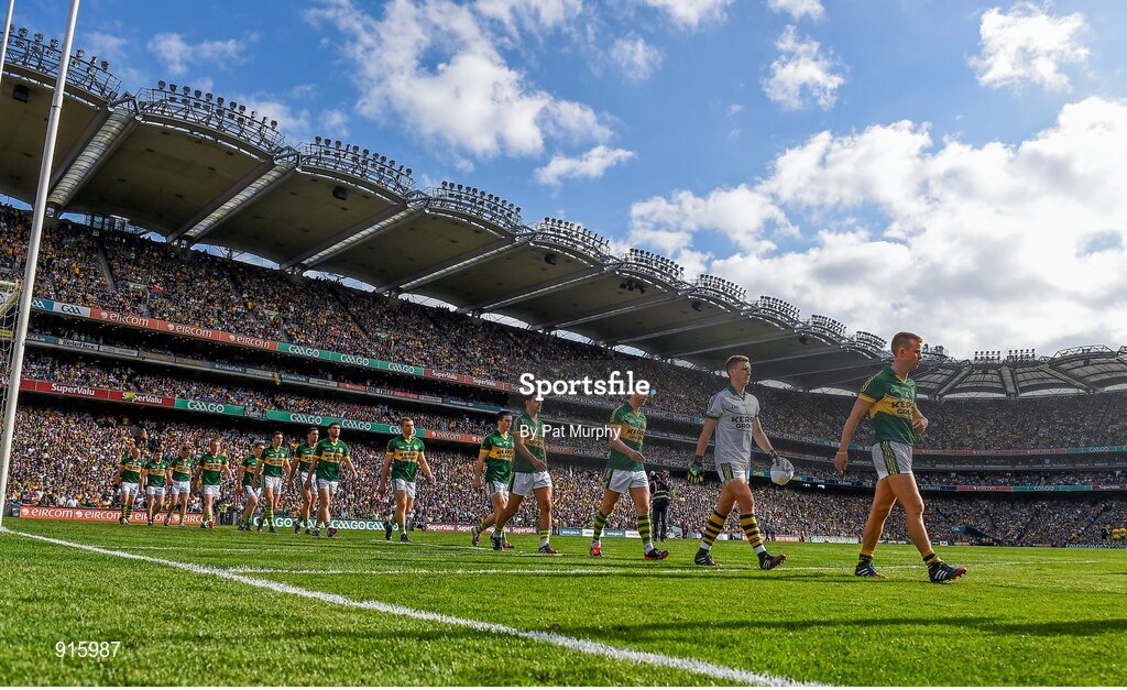 21 September 2014; The Kerry team during the pre-match parade. GAA Football All Ireland Senior Championship Final, Kerry v Donegal. Croke Park, Dublin. Picture credit: Pat Murphy / SPORTSFILE