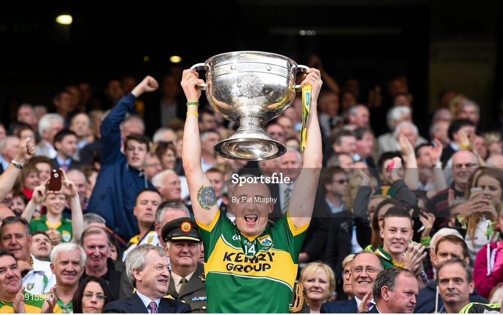 21 September 2014; Kerry's Kieran Donaghy lifts the Sam Maguire Cup. GAA Football All Ireland Senior Championship Final, Kerry v Donegal. Croke Park, Dublin. Picture credit: Pat Murphy / SPORTSFILE