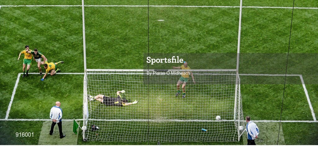 21 September 2014; Paul Geaney, Kerry, celebrates scoring his side's first goal past Donegal goalkeeper Paul Durcan. GAA Football All Ireland Senior Championship Final, Kerry v Donegal. Croke Park, Dublin. Picture credit: Piaras Ó Mídheach / SPORTSFILE