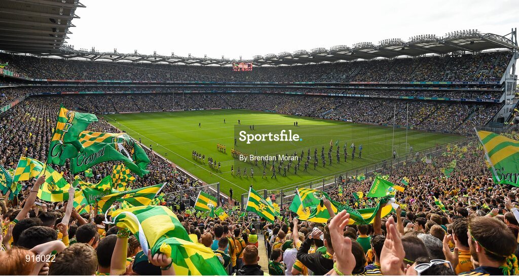 21 September 2014; The Donegal and Kerry teams walk past Hill 16 during the pre-match parade. GAA Football All Ireland Senior Championship Final, Kerry v Donegal. Croke Park, Dublin. Picture credit: Brendan Moran / SPORTSFILE