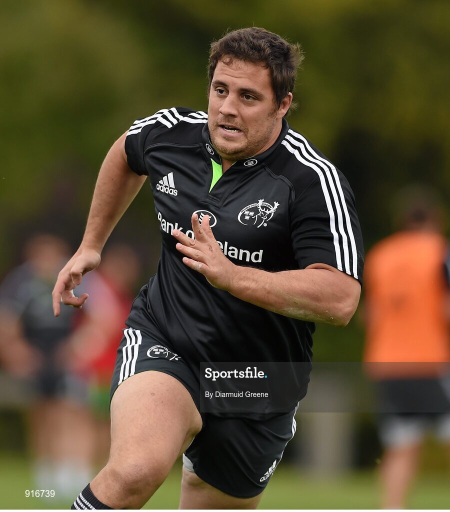 23 September 2014; Munster's Eusebio Guinazu during squad training ahead of their Guinness PRO12, Round 4, match against Ospreys on Saturday. Munster Rugby Squad Training and Press Conference, University of Limerick, Limerick. Picture credit: Diarmuid Greene / SPORTSFILE